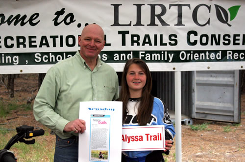 July 22, 2012 – Kid’s Trail dedication to Rich Kappel Denise Riker, Tara Kappel, Children Alyvia and Shia Kappel, and Tom Riker picturedMay 6, 2012 – Trail Dedication for Alisa Romer. Aly wrote an article for kidsday that appeared in the Sunday paper back in Jan 2012. We dedicated a trail to Aly to thank her for supporting LIRTC and acting as a youth representative for safe and responsible recreation. Thank you Aly !